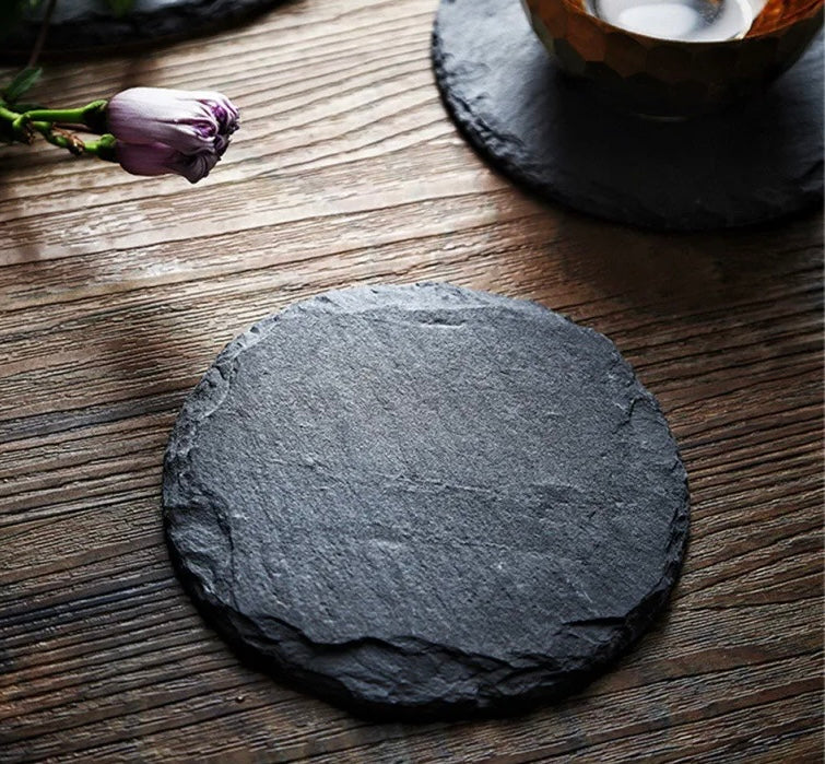 Elevate your dining experience with this sleek black stone plate. Its smooth surface and modern design make it perfect for showcasing your culinary creations.