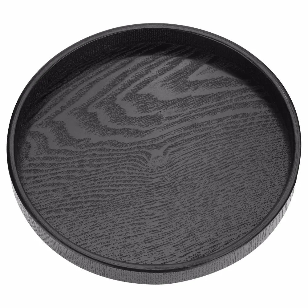 This elegant black circular serving tray is a versatile addition to any home.